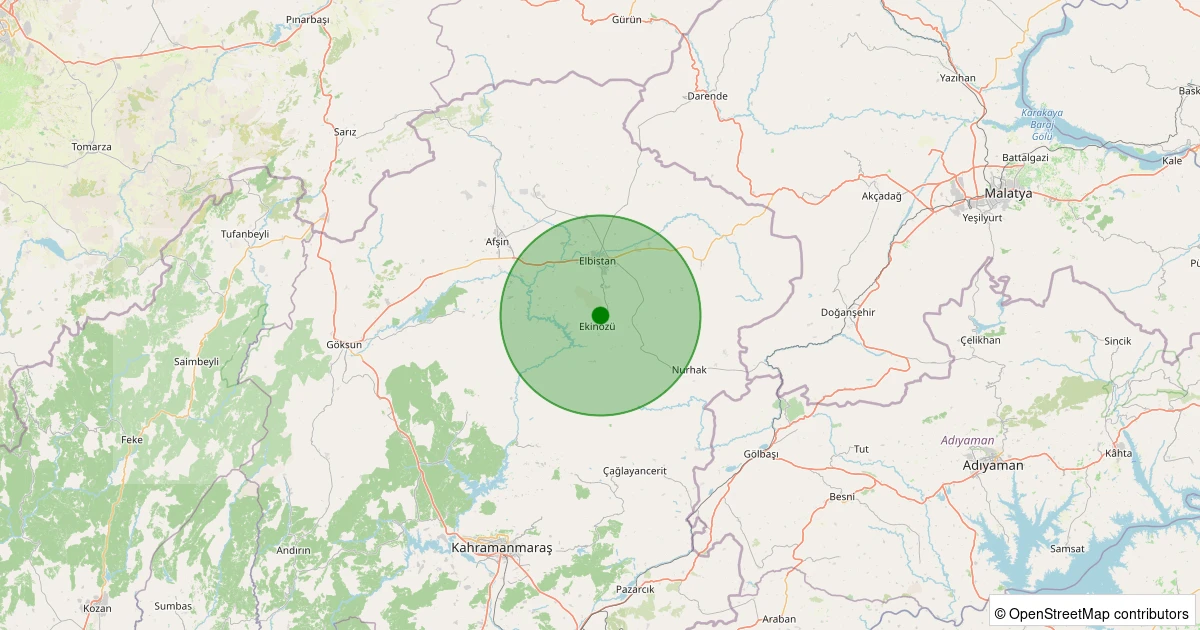 Son 7 gün içinde Ekinözü noktasından 100 km yarıçap içerisinde meydana gelen diğer depremler: