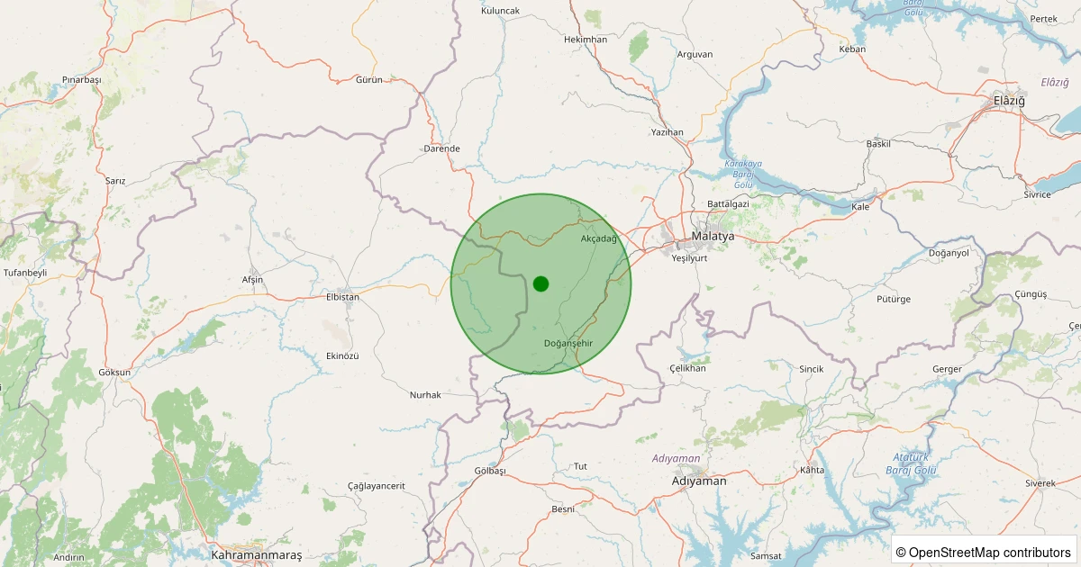 Son 7 gün içinde Doğanşehir - Dedeyazı noktasından 100 km yarıçap içerisinde meydana gelen diğer depremler: