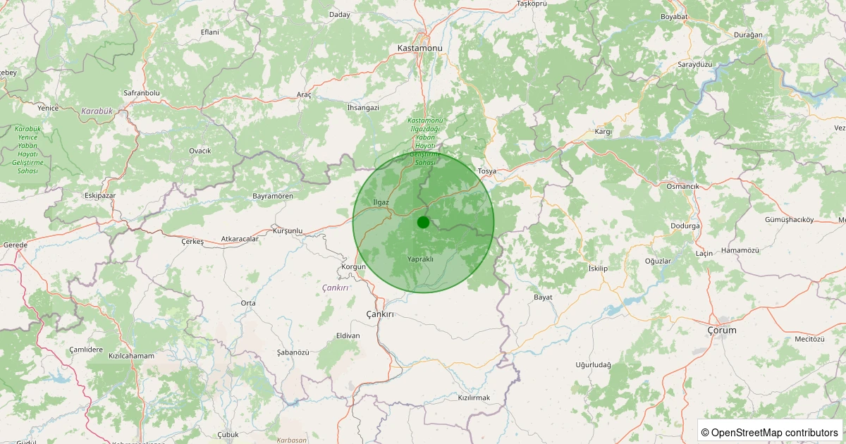 Son 7 gün içinde Ilgaz - Yuvasaray Köyü noktasından 100 km yarıçap içerisinde meydana gelen diğer depremler: