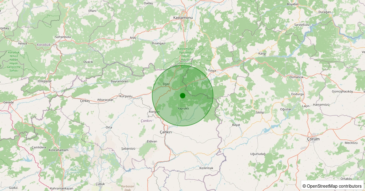 Son 7 gün içinde Ilgaz - Yuvasaray Köyü noktasından 100 km yarıçap içerisinde meydana gelen diğer depremler: