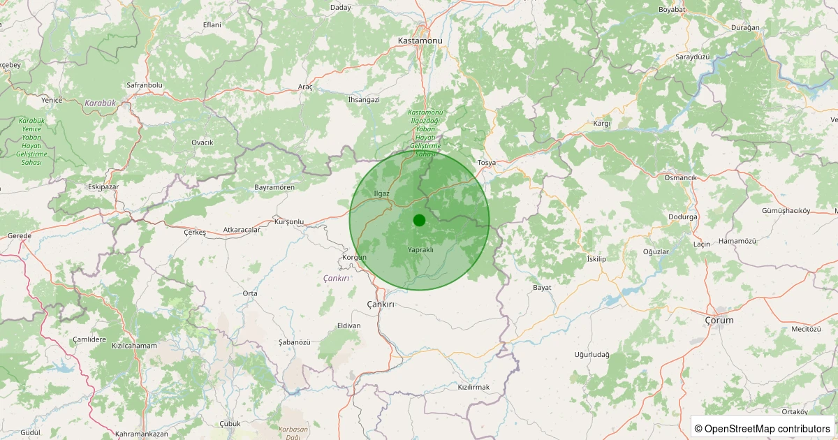 Son 7 gün içinde Ilgaz - Yuvasaray Köyü noktasından 100 km yarıçap içerisinde meydana gelen diğer depremler: