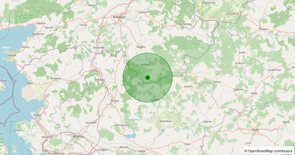 Son 7 gün içinde Sındırgı - Kınık noktasından 100 km yarıçap içerisinde meydana gelen diğer depremler: