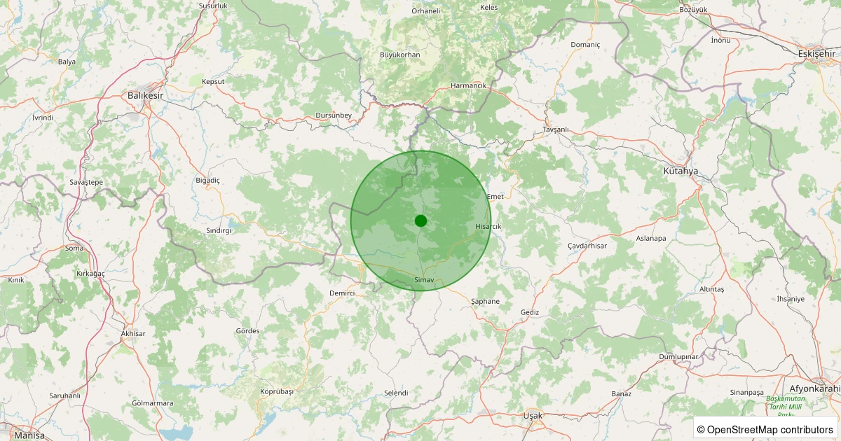 Son 7 gün içinde Simav - Yeşildere Köyü noktasından 100 km yarıçap içerisinde meydana gelen diğer depremler: