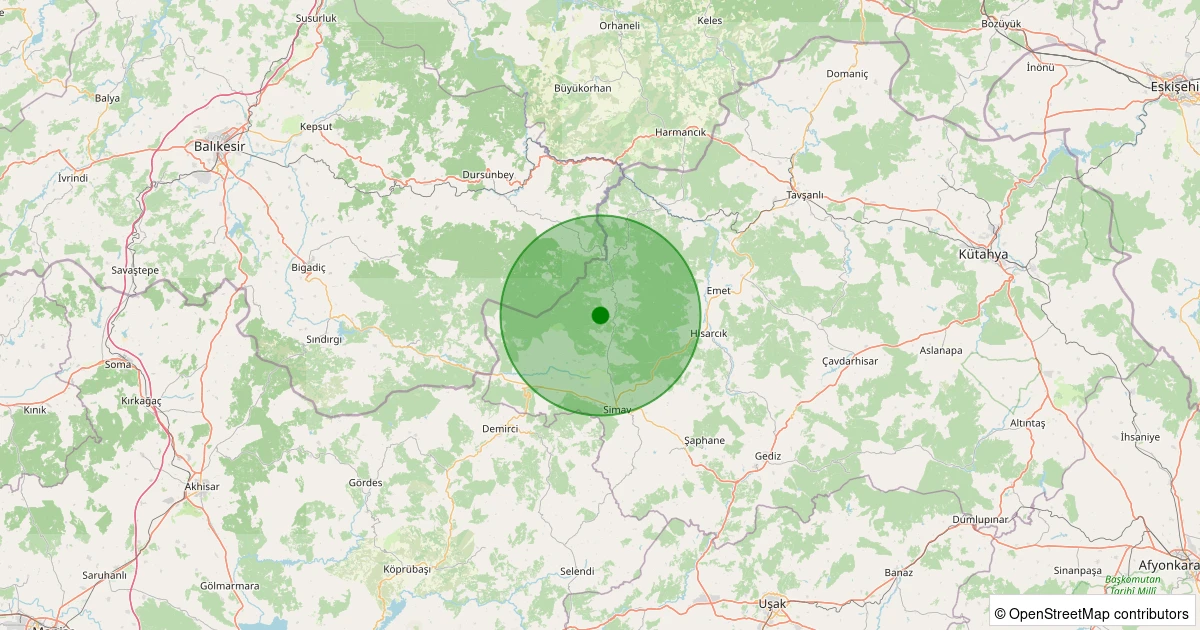 Son 7 gün içinde Simav - Ortacı Köyü noktasından 100 km yarıçap içerisinde meydana gelen diğer depremler: