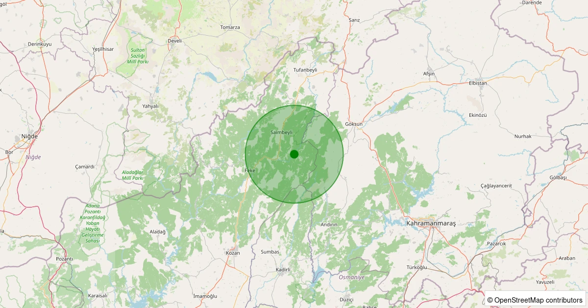 Son 7 gün içinde Saimbeyli - Aksaağaç noktasından 100 km yarıçap içerisinde meydana gelen diğer depremler:
