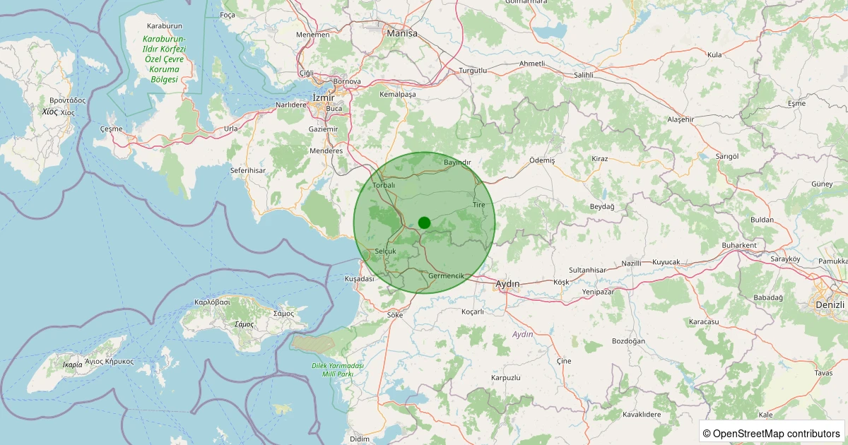 Son 7 gün içinde Tire - Büyükkale noktasından 100 km yarıçap içerisinde meydana gelen diğer depremler: