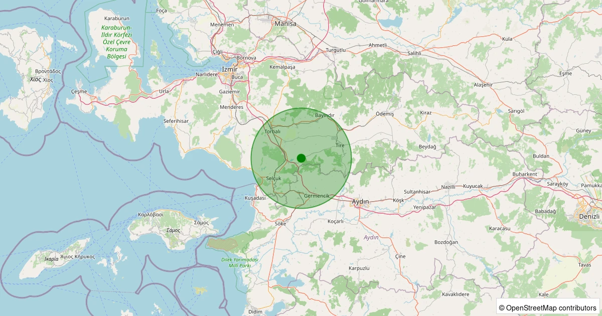 Son 7 gün içinde Tire - Büyükkale noktasından 100 km yarıçap içerisinde meydana gelen diğer depremler: