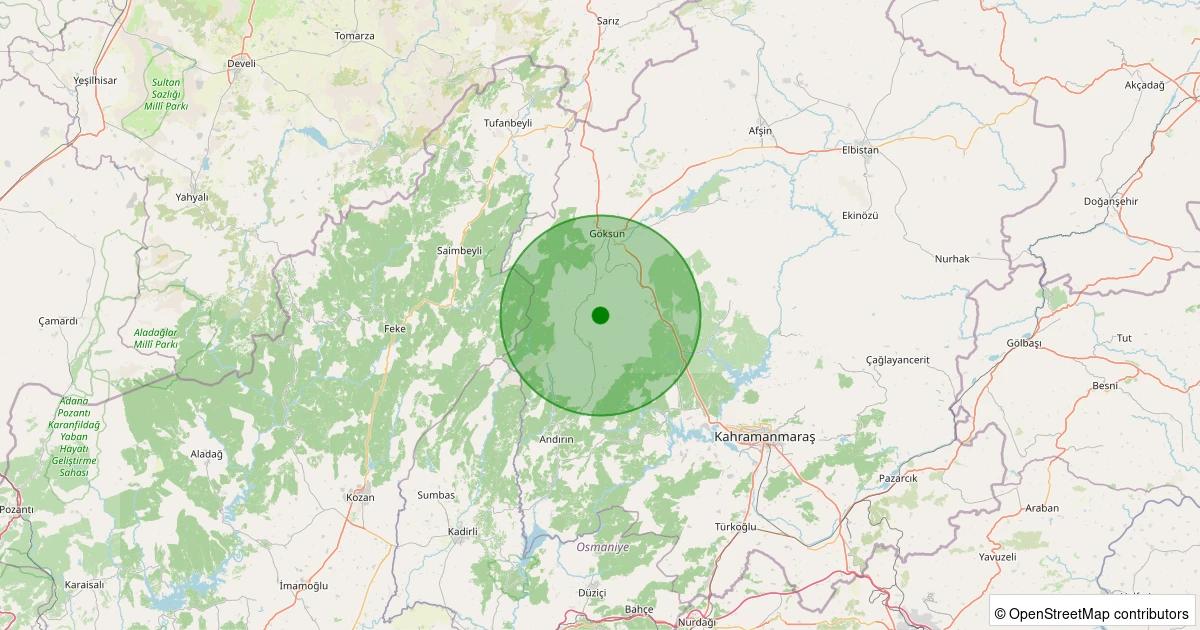 Son 7 gün içinde Onikişubat - Kumarlı noktasından 100 km yarıçap içerisinde meydana gelen diğer depremler: