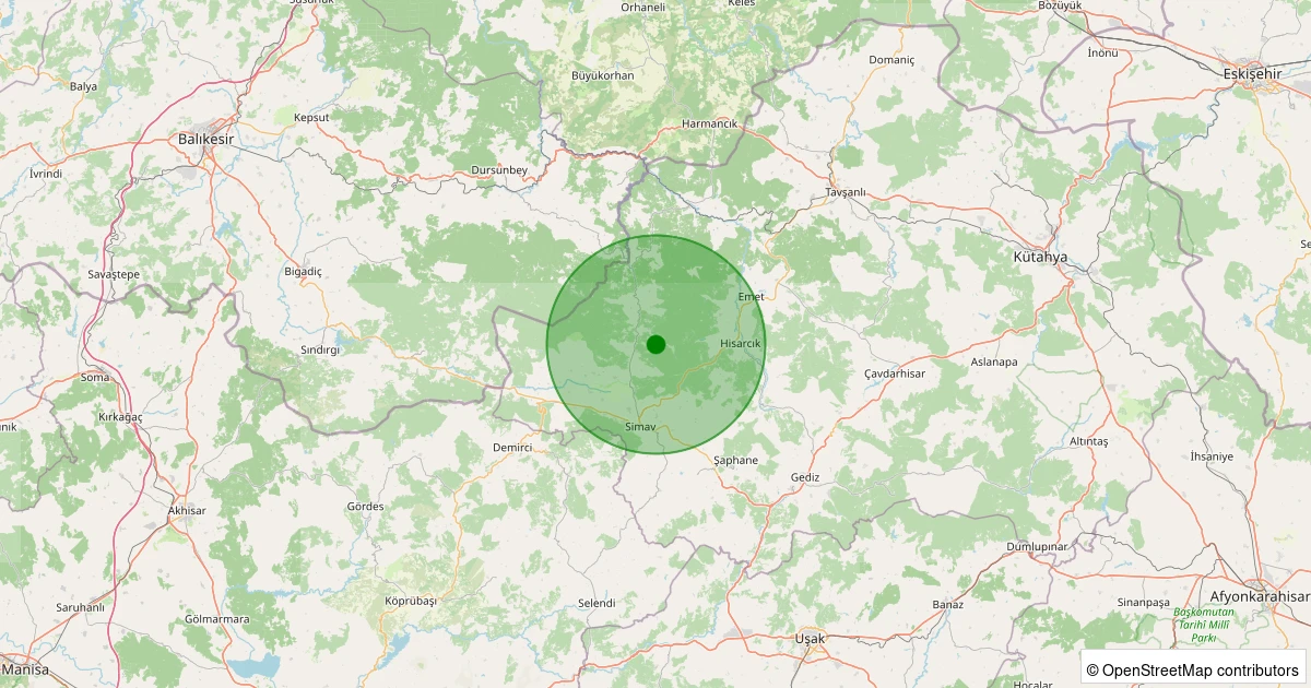 Son 7 gün içinde Simav - Yeşildere Köyü noktasından 100 km yarıçap içerisinde meydana gelen diğer depremler: