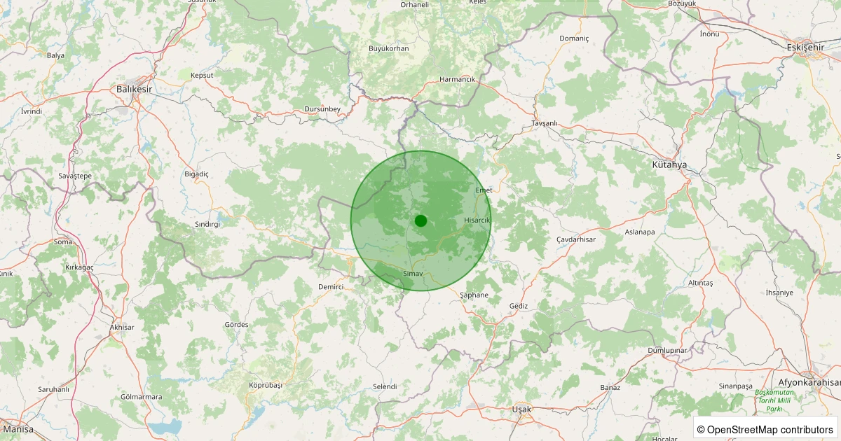 Son 7 gün içinde Simav - Maden Köyü noktasından 100 km yarıçap içerisinde meydana gelen diğer depremler:
