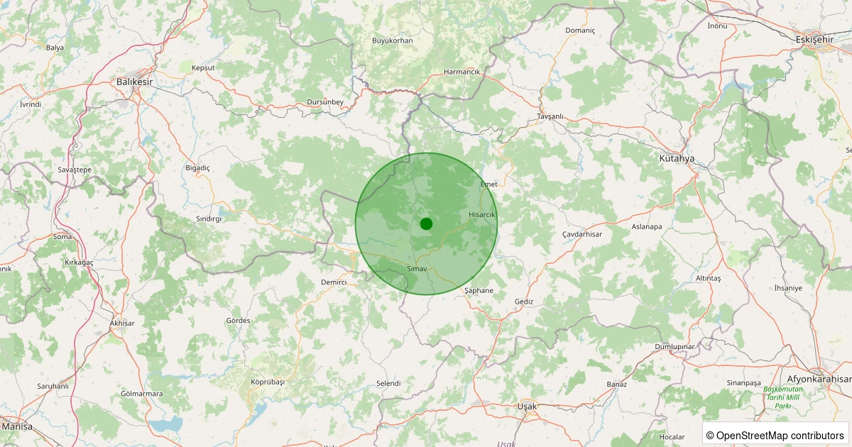 Son 7 gün içinde Simav - Yemişli Köyü noktasından 100 km yarıçap içerisinde meydana gelen diğer depremler: