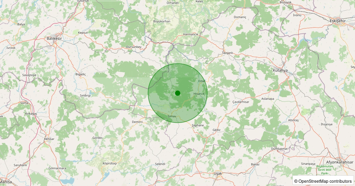 Son 7 gün içinde Simav - Yeşildere Köyü noktasından 100 km yarıçap içerisinde meydana gelen diğer depremler: