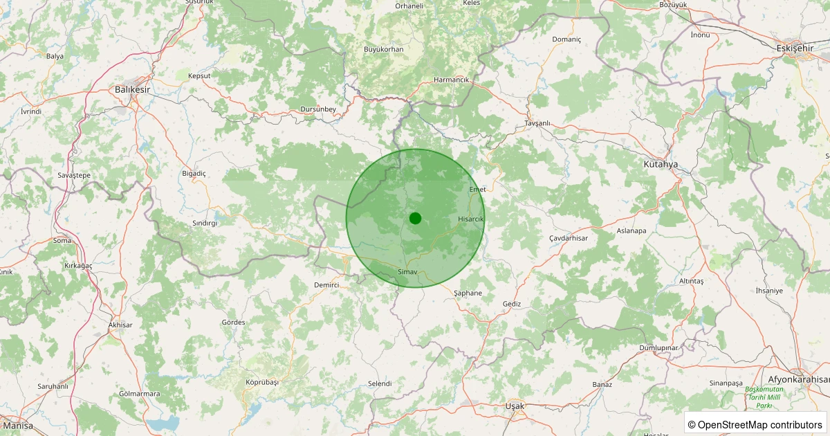 Son 7 gün içinde Simav - Maden Köyü noktasından 100 km yarıçap içerisinde meydana gelen diğer depremler: