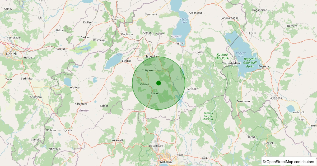 Son 7 gün içinde Bucak - Taşyayla Köyü noktasından 100 km yarıçap içerisinde meydana gelen diğer depremler: