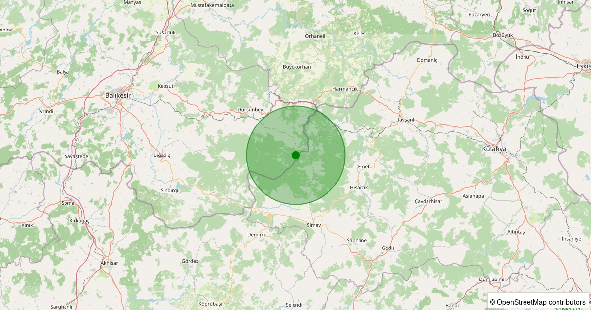Son 7 gün içinde Dursunbey - Reşadiye noktasından 100 km yarıçap içerisinde meydana gelen diğer depremler:
