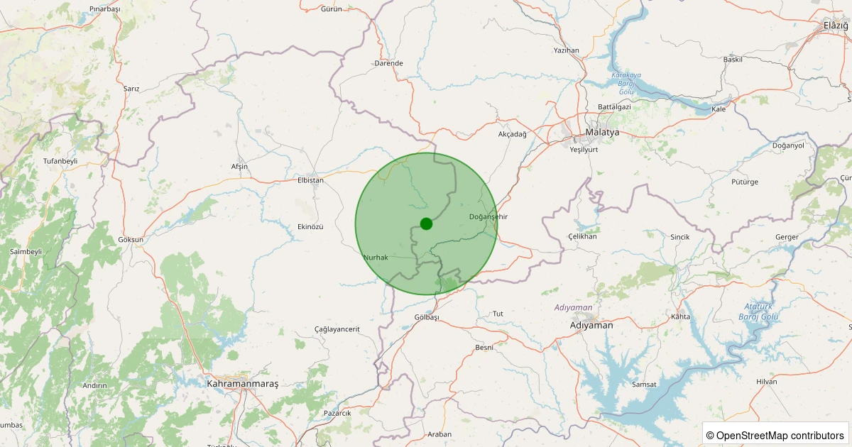 Son 7 gün içinde Doğanşehir - Gövdeli noktasından 100 km yarıçap içerisinde meydana gelen diğer depremler: