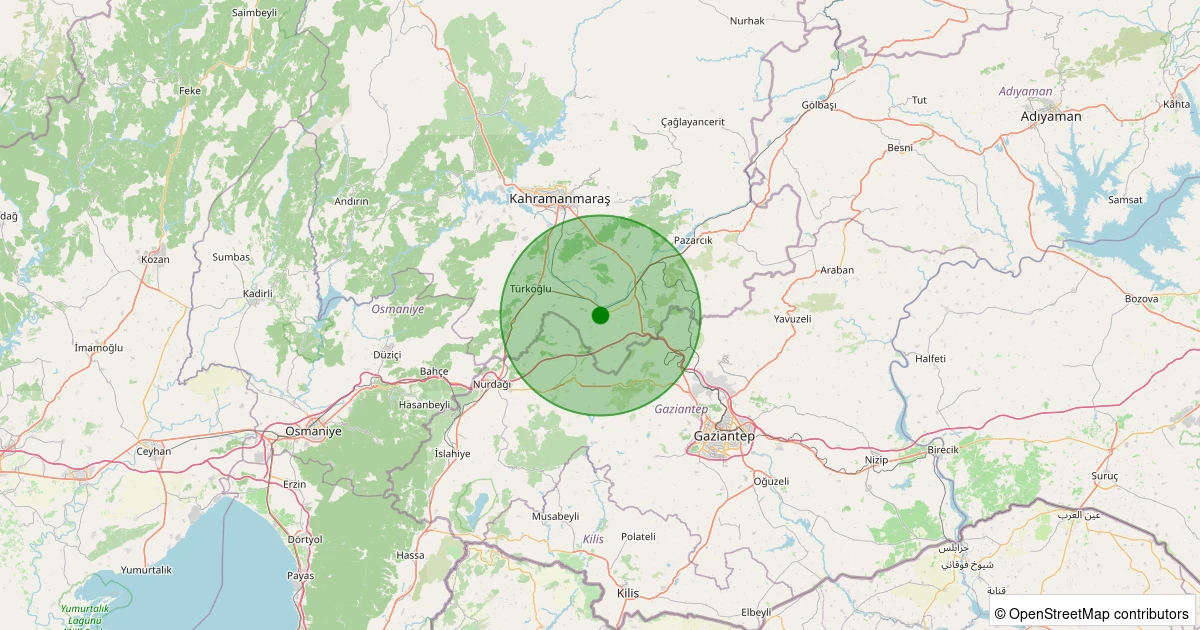 Son 7 gün içinde Kahramanmaraş noktasından 100 km yarıçap içerisinde meydana gelen diğer depremler: