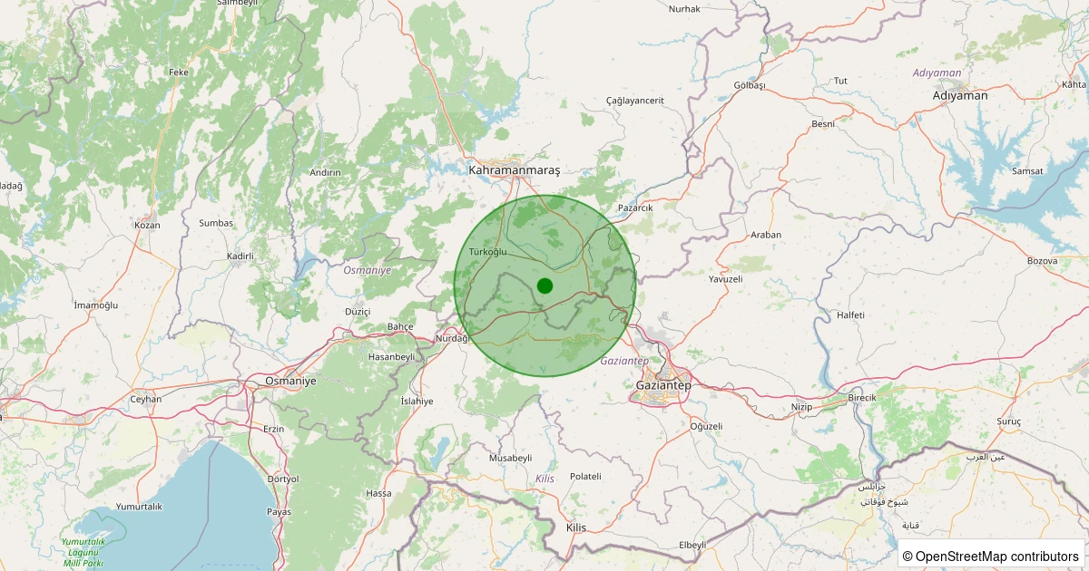 Son 7 gün içinde Kahramanmaraş noktasından 100 km yarıçap içerisinde meydana gelen diğer depremler: