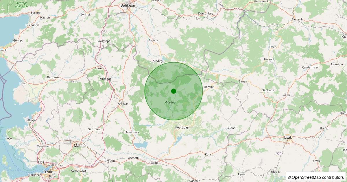 Son 7 gün içinde Gördes noktasından 100 km yarıçap içerisinde meydana gelen diğer depremler: