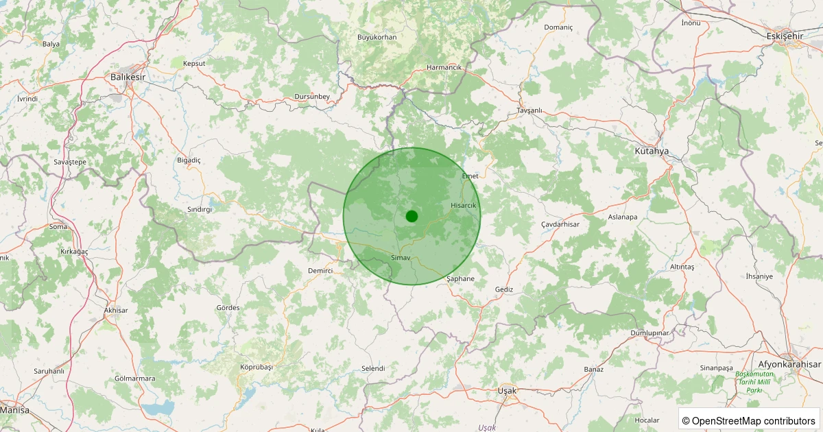 Son 7 gün içinde Simav - Yemişli Köyü noktasından 100 km yarıçap içerisinde meydana gelen diğer depremler: