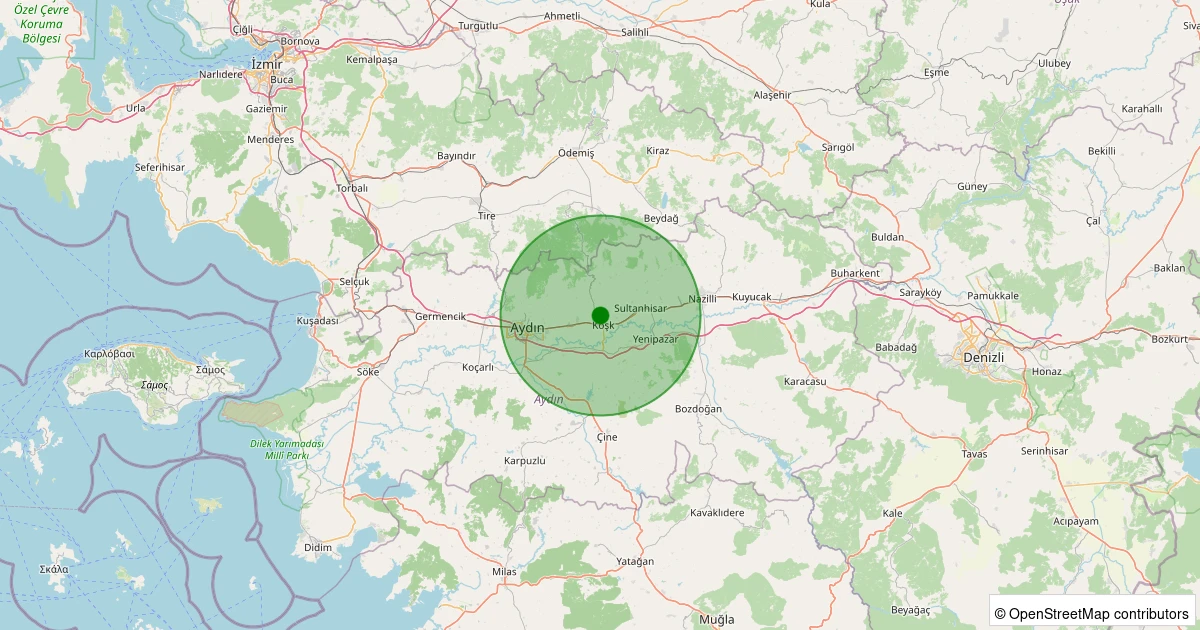 Son 7 gün içinde Köşk - Baklaköy noktasından 100 km yarıçap içerisinde meydana gelen diğer depremler: