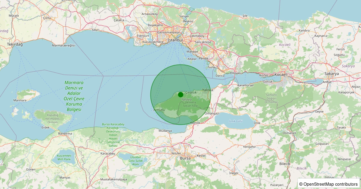Son 7 gün içinde Çınarcık - Şenköy Köyü noktasından 100 km yarıçap içerisinde meydana gelen diğer depremler: