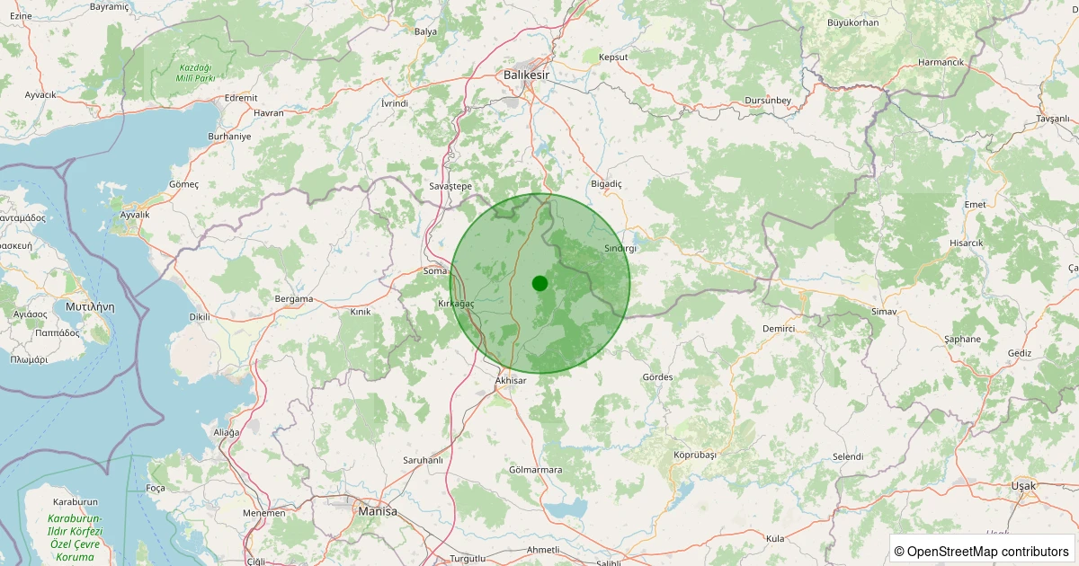 Son 7 gün içinde Akhisar - Yaykın Köyü noktasından 100 km yarıçap içerisinde meydana gelen diğer depremler:
