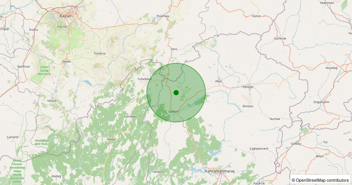 Son 7 gün içinde Göksun - Bozhüyük noktasından 100 km yarıçap içerisinde meydana gelen diğer depremler: