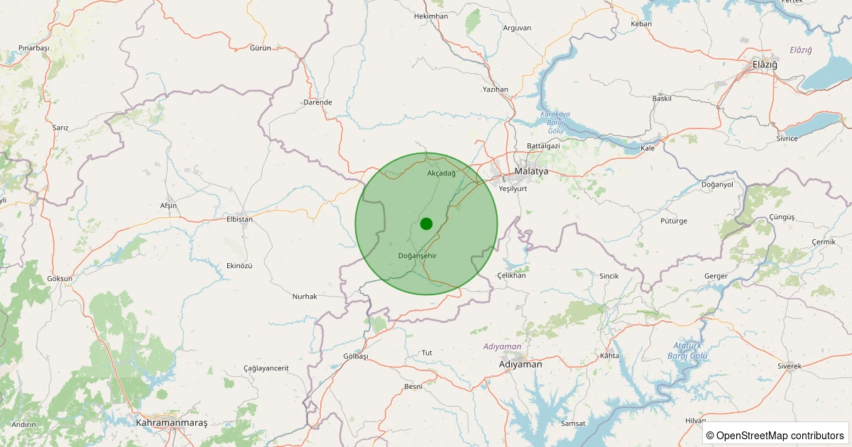 Son 7 gün içinde Doğanşehir - Karaterzi noktasından 100 km yarıçap içerisinde meydana gelen diğer depremler: