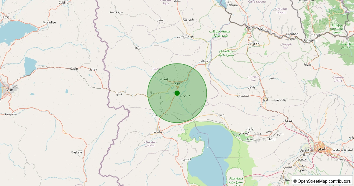 Son 7 gün içinde Khoy, West Azarbaijan (İran) - [47.84 km] Başkale (Van) noktasından 100 km yarıçap içerisinde meydana gelen diğer depremler: