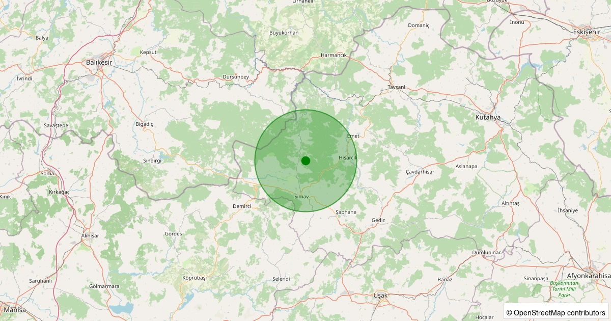 Son 7 gün içinde Simav - Yemişli Köyü noktasından 100 km yarıçap içerisinde meydana gelen diğer depremler:
