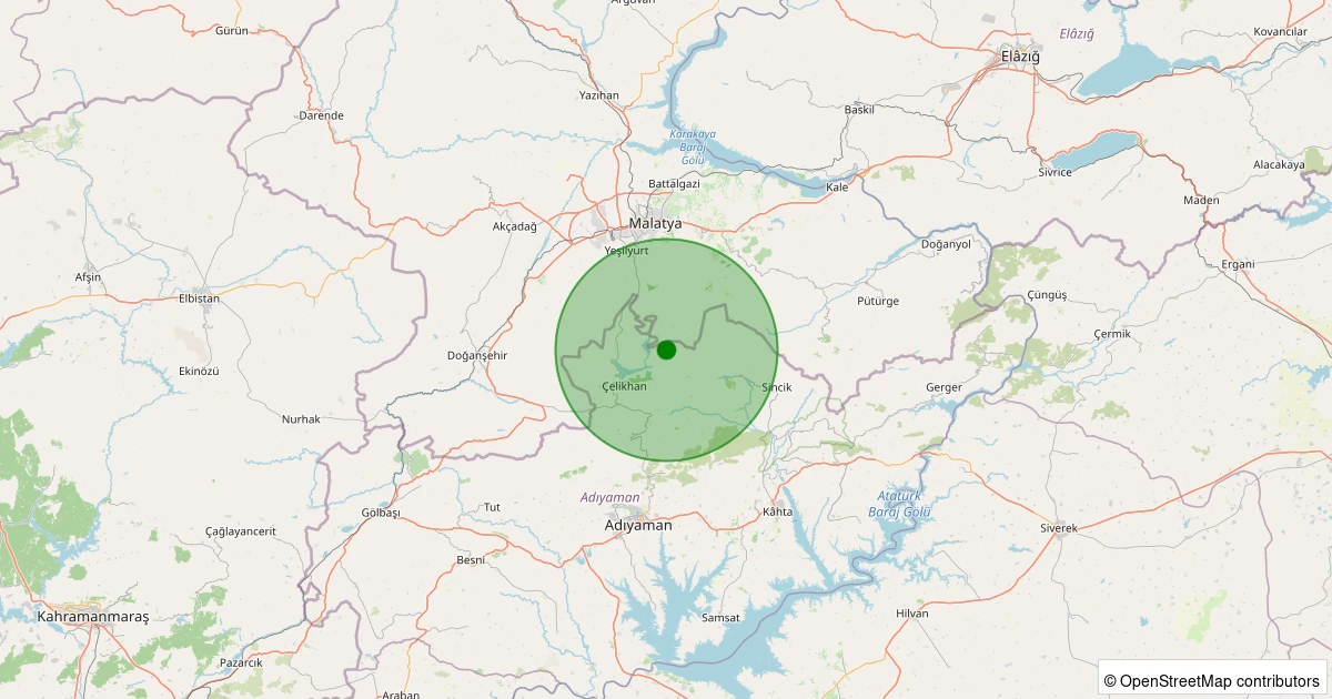 Son 7 gün içinde Çelikhan - Taşdamlar Köyü noktasından 100 km yarıçap içerisinde meydana gelen diğer depremler: