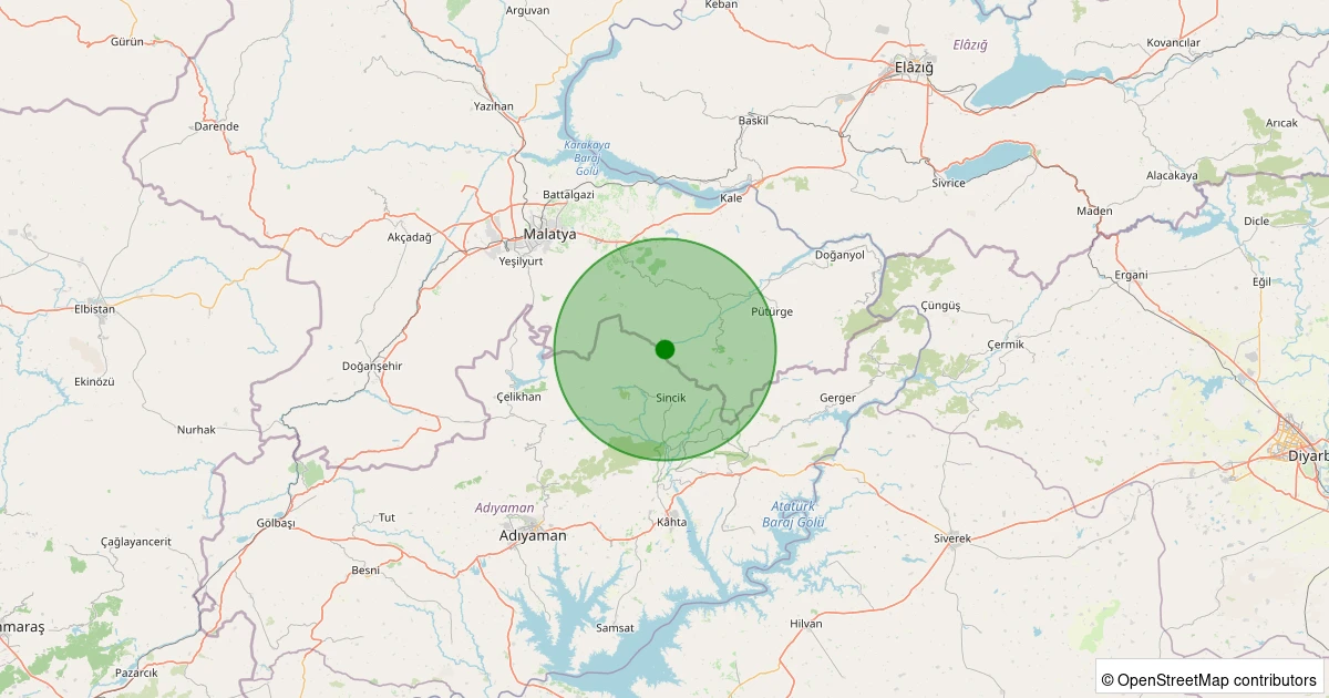 Son 7 gün içinde Pütürge - Arıtoprak Köyü noktasından 100 km yarıçap içerisinde meydana gelen diğer depremler: