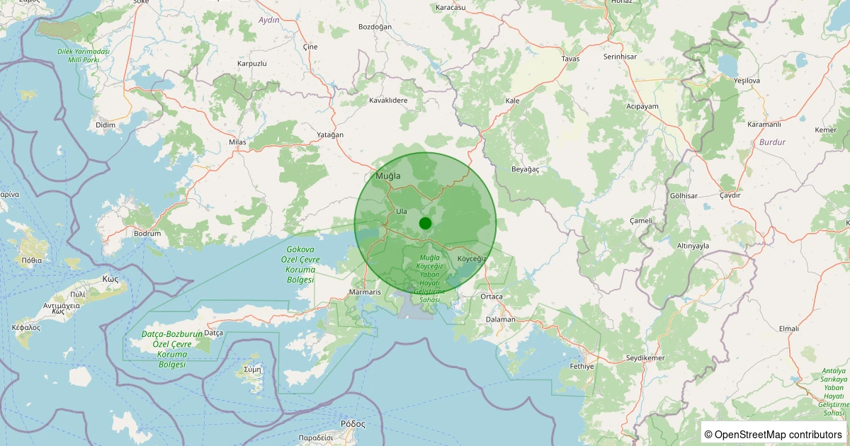 Son 7 gün içinde Ula - Çiçekli noktasından 100 km yarıçap içerisinde meydana gelen diğer depremler:
