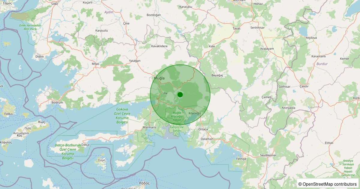 Son 7 gün içinde Ula - Kıyra noktasından 100 km yarıçap içerisinde meydana gelen diğer depremler: