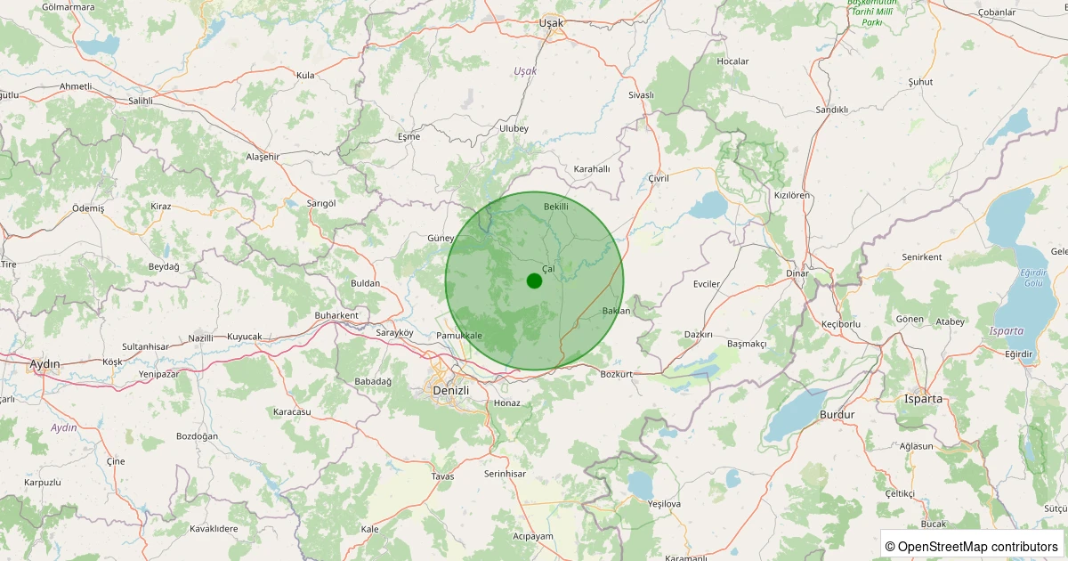 Son 7 gün içinde Çal - İsmailler noktasından 100 km yarıçap içerisinde meydana gelen diğer depremler: