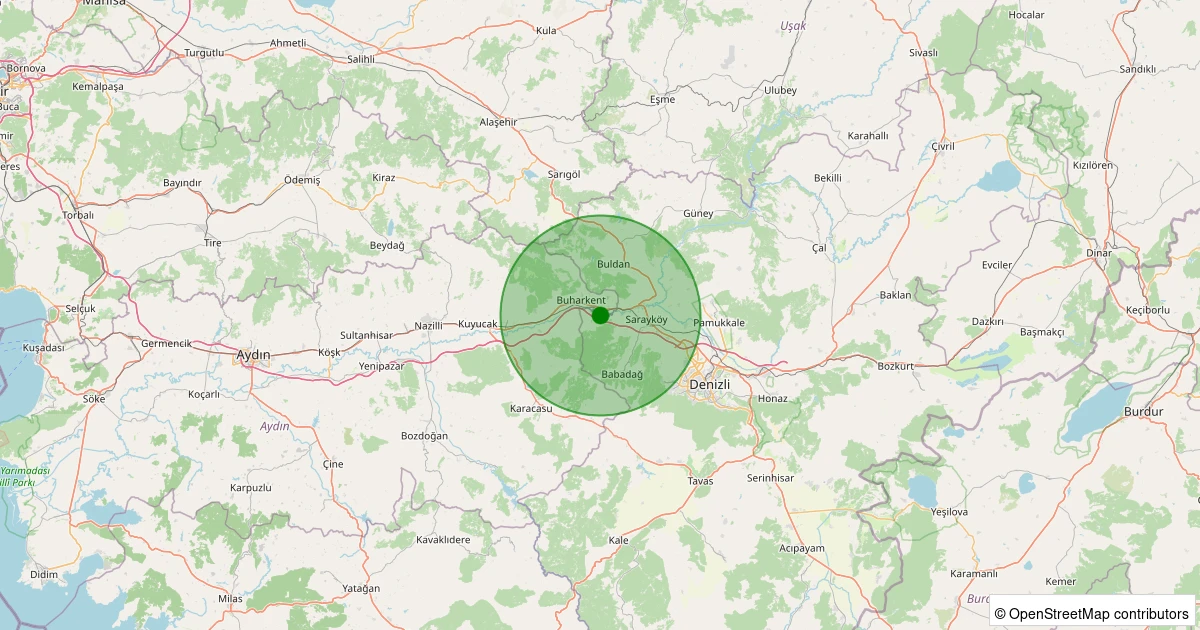 Son 7 gün içinde Sarayköy - Kabaağaç Köyü noktasından 100 km yarıçap içerisinde meydana gelen diğer depremler: