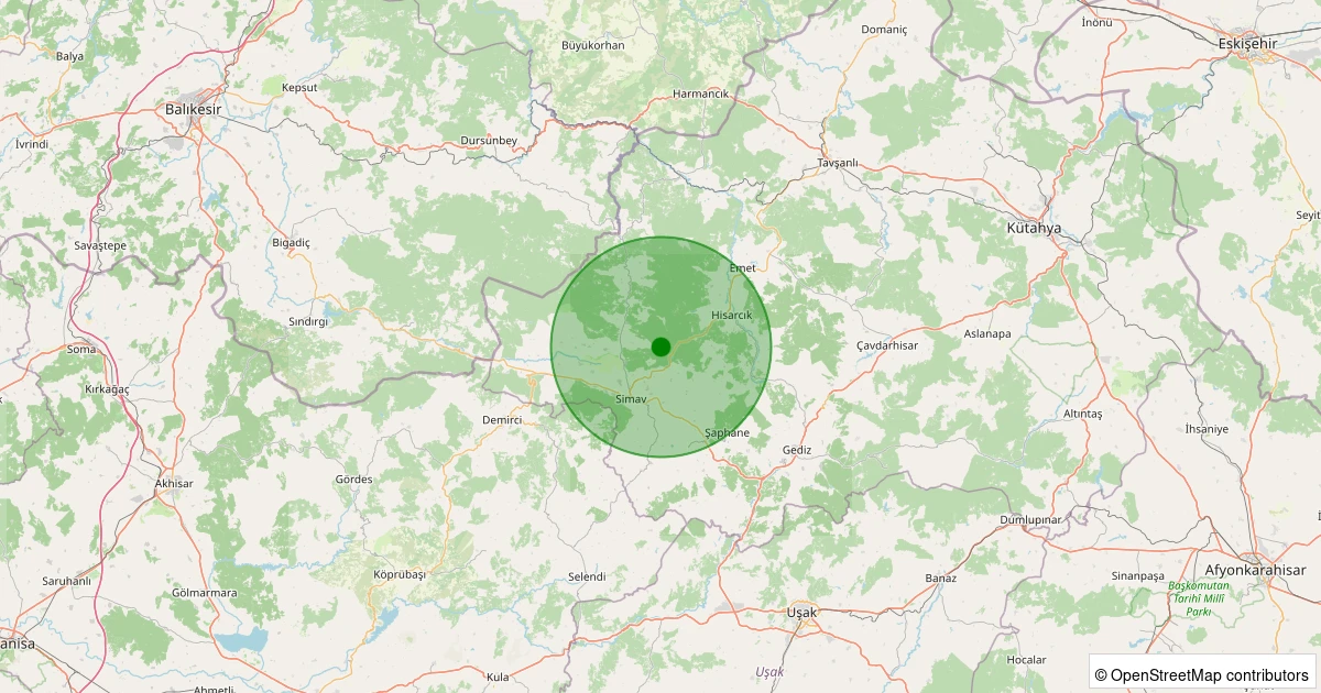 Son 7 gün içinde Simav - Karacaören Köyü noktasından 100 km yarıçap içerisinde meydana gelen diğer depremler: