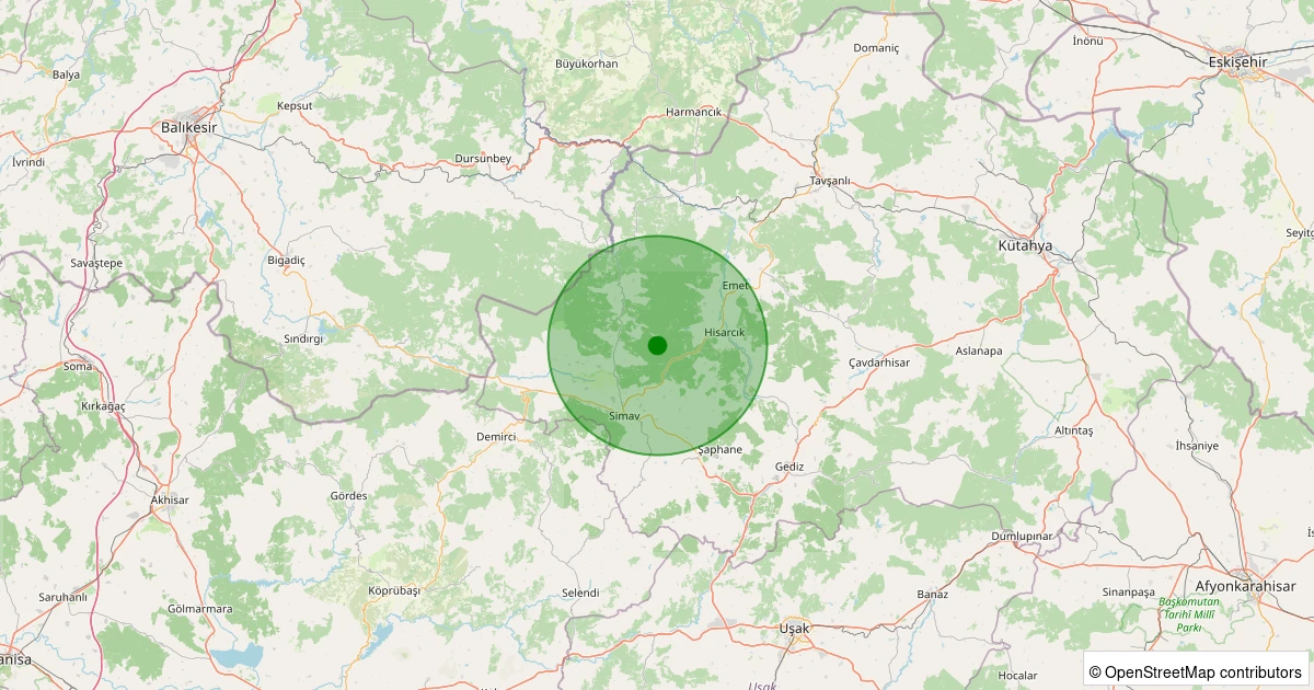 Son 7 gün içinde Simav - Maden Köyü noktasından 100 km yarıçap içerisinde meydana gelen diğer depremler: