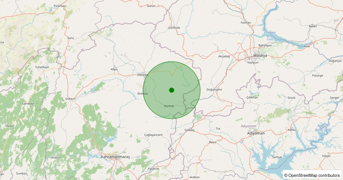 Son 7 gün içinde Elbistan - Bakış-Soğucak Köyü noktasından 100 km yarıçap içerisinde meydana gelen diğer depremler:
