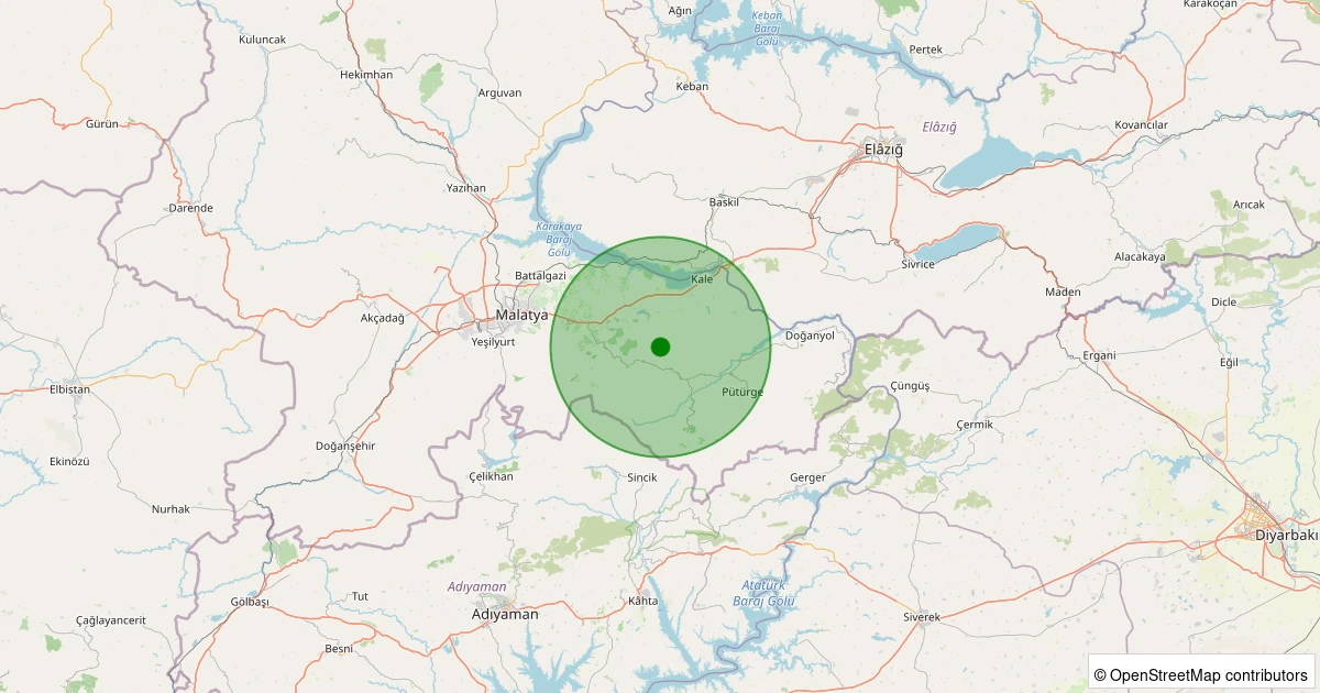 Son 7 gün içinde Battalgazi - Kamıştaş Köyü noktasından 100 km yarıçap içerisinde meydana gelen diğer depremler: