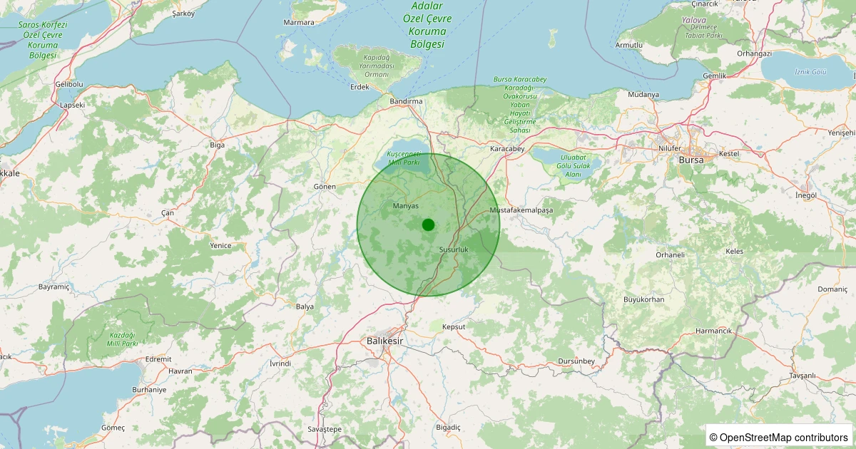 Son 7 gün içinde Manyas - Eskimanyas noktasından 100 km yarıçap içerisinde meydana gelen diğer depremler: