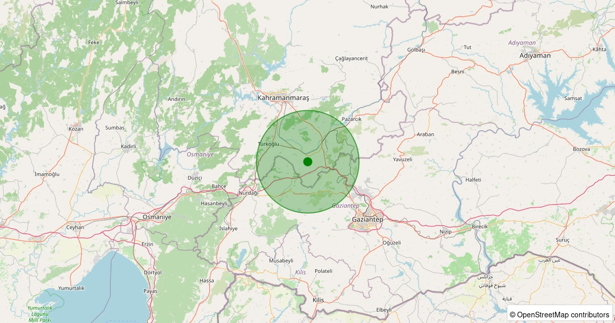 Son 7 gün içinde Pazarcık - Ördekdede noktasından 100 km yarıçap içerisinde meydana gelen diğer depremler: