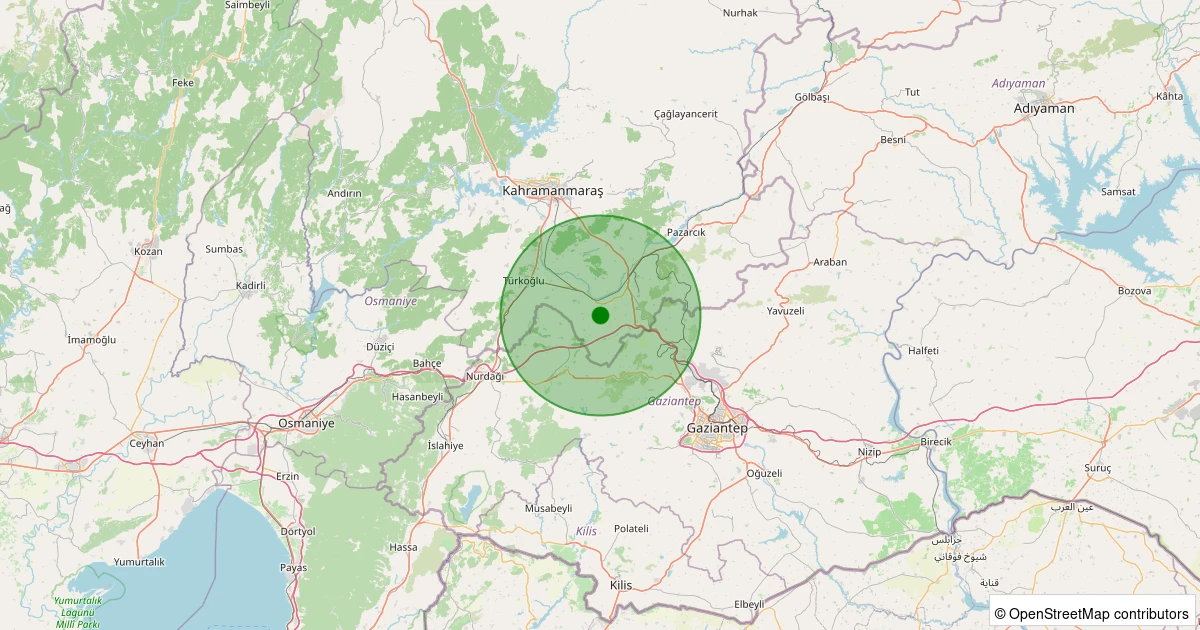 Son 7 gün içinde Pazarcık - Ördekdede noktasından 100 km yarıçap içerisinde meydana gelen diğer depremler: