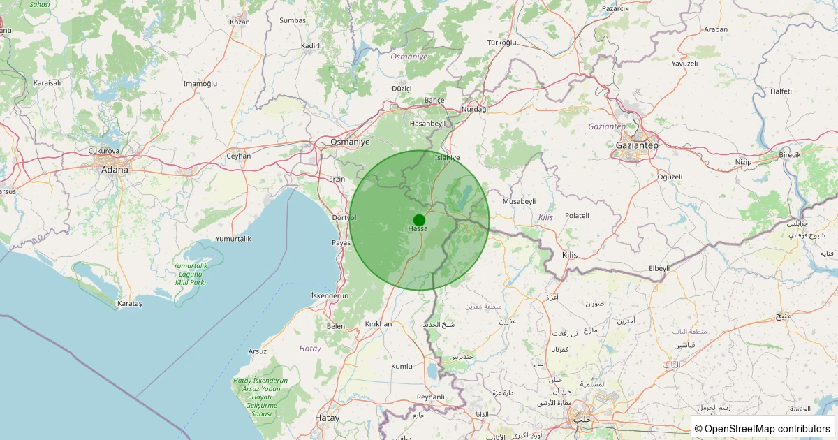 Son bir hafta içerisinde Hatay şehri Hassa - Tiyek Köyü noktasından 100 km yarıçap içerisinde toplamda 49 deprem kaydedilmiştir. Bu depremlerden en büyüğü 3.0 büyüklüğünde ve en sığ odaklısı 3.30 kilometre derinlikte gerçekleşmiştir.