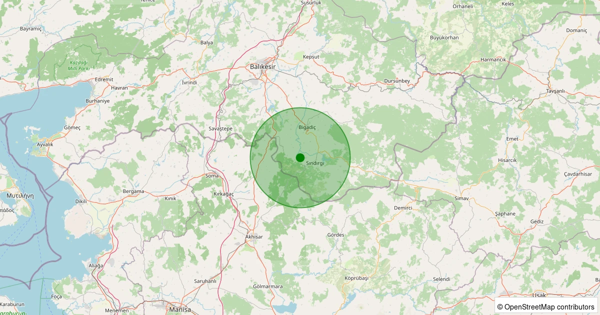 Son 7 gün içinde Sındırgı - Karagür noktasından 100 km yarıçap içerisinde meydana gelen diğer depremler: