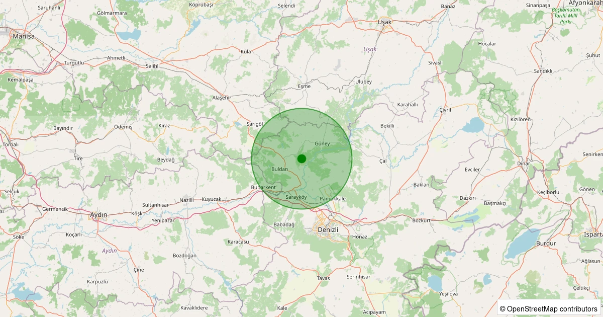 Son 7 gün içinde Buldan - Yenicekent noktasından 100 km yarıçap içerisinde meydana gelen diğer depremler: