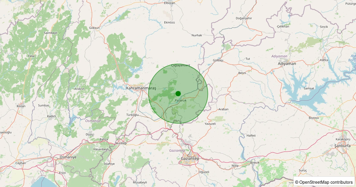 Son 7 gün içinde Pazarcık - Tetirlik noktasından 100 km yarıçap içerisinde meydana gelen diğer depremler: