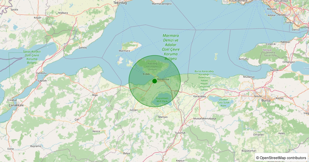 Son 7 gün içinde Bandırma - Edincik noktasından 100 km yarıçap içerisinde meydana gelen diğer depremler: