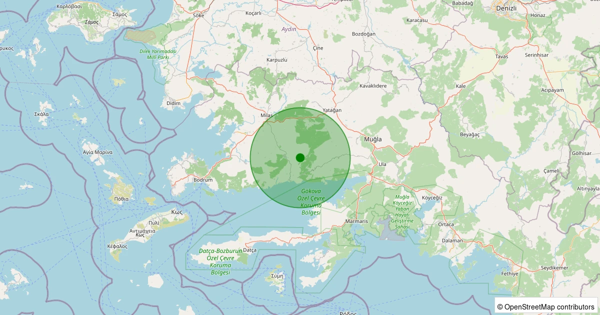 Son 7 gün içinde Milas - Yoğunoluk noktasından 100 km yarıçap içerisinde meydana gelen diğer depremler: